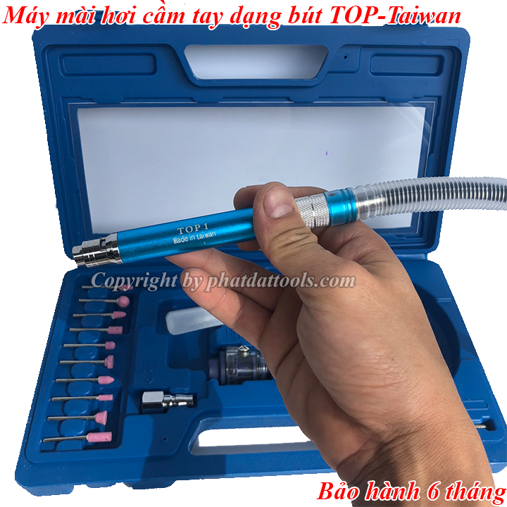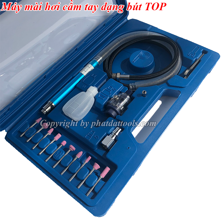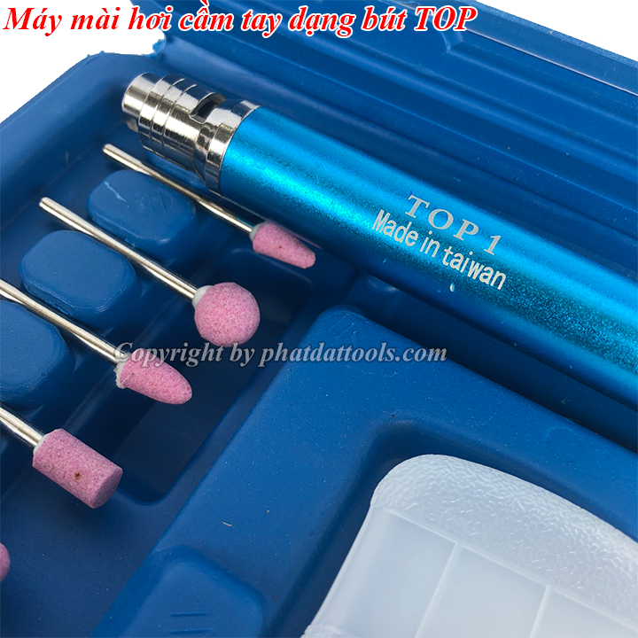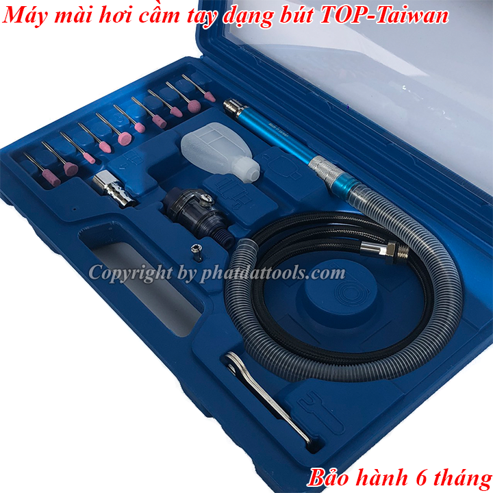 Bộ máy mài hơi cầm tay dạng bút TOP-Taiwan là bộ dụng cụ đa năng,chuyên dụng trong các công việc mài khắc,đánh bóng các chi tiết nhỏ,hẹp hoặc ở những vị trí khó gia công.