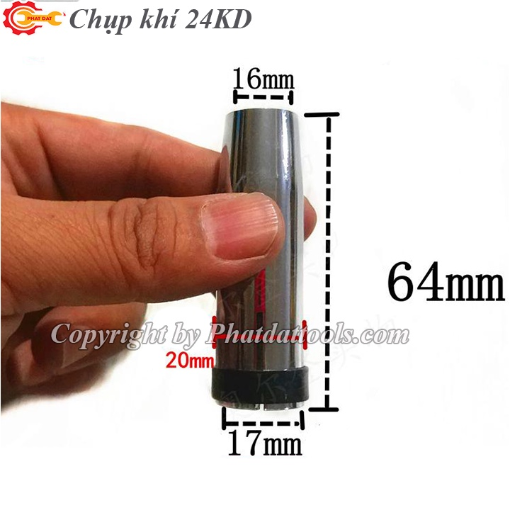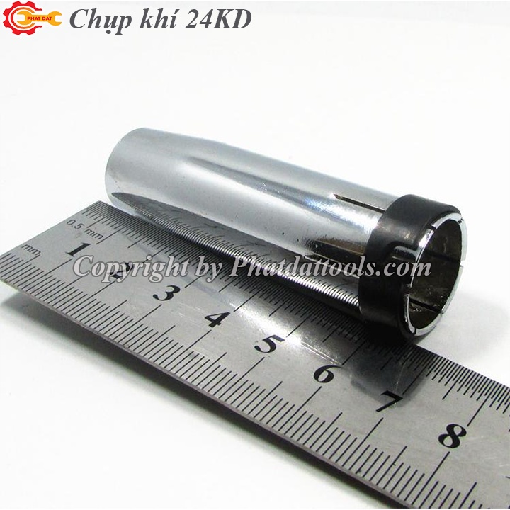 *** Chụp khí cho mỏ hàn MIG 24KD là phụ kiện lắp cho mỏ hàn Mig 24KD, thường dùng trên các dòng máy hàn MIG/ MAG 200 - 300A, tác dụng điều hướng dòng khí bảo vệ mối hàn.