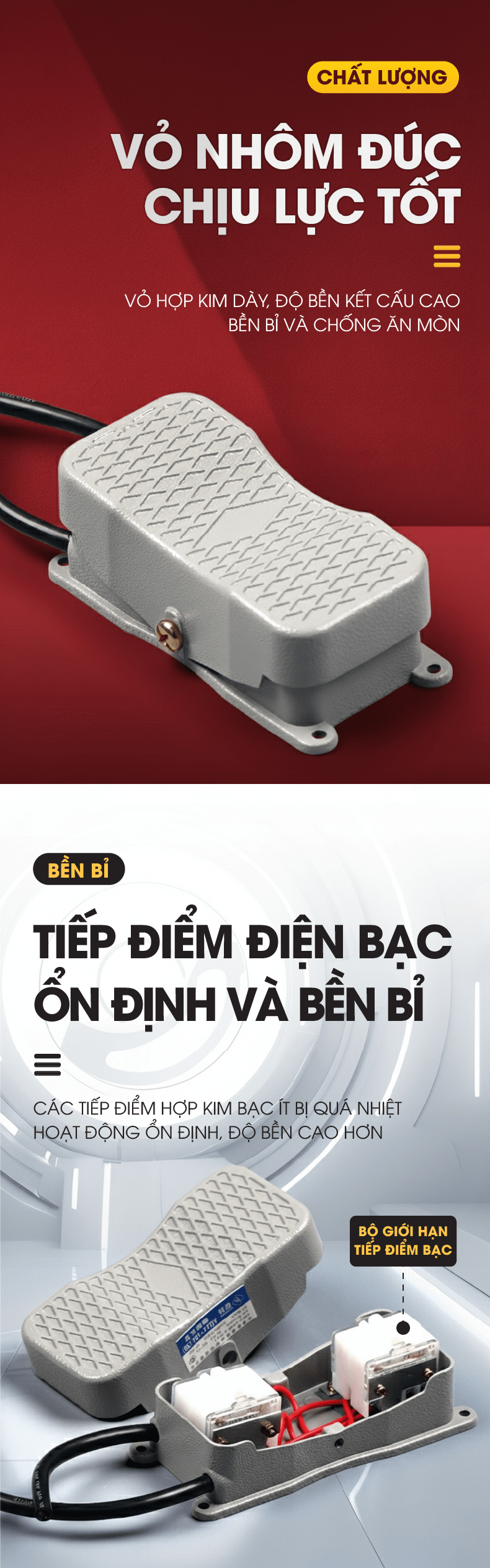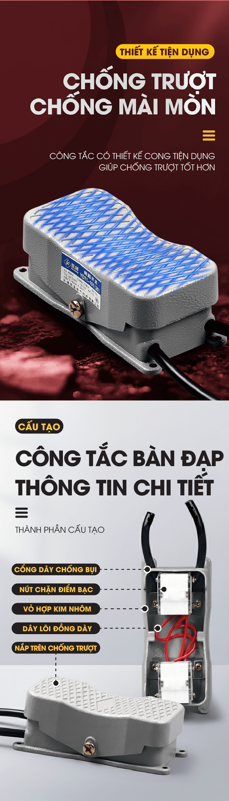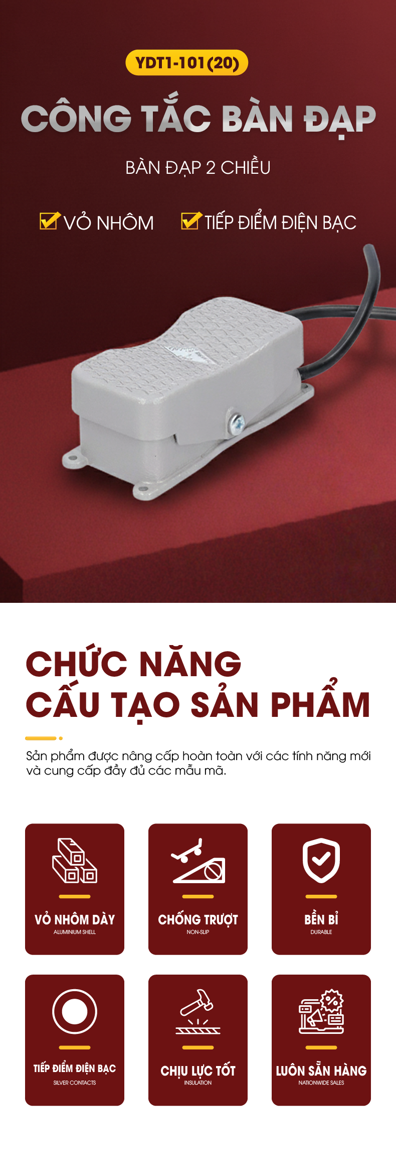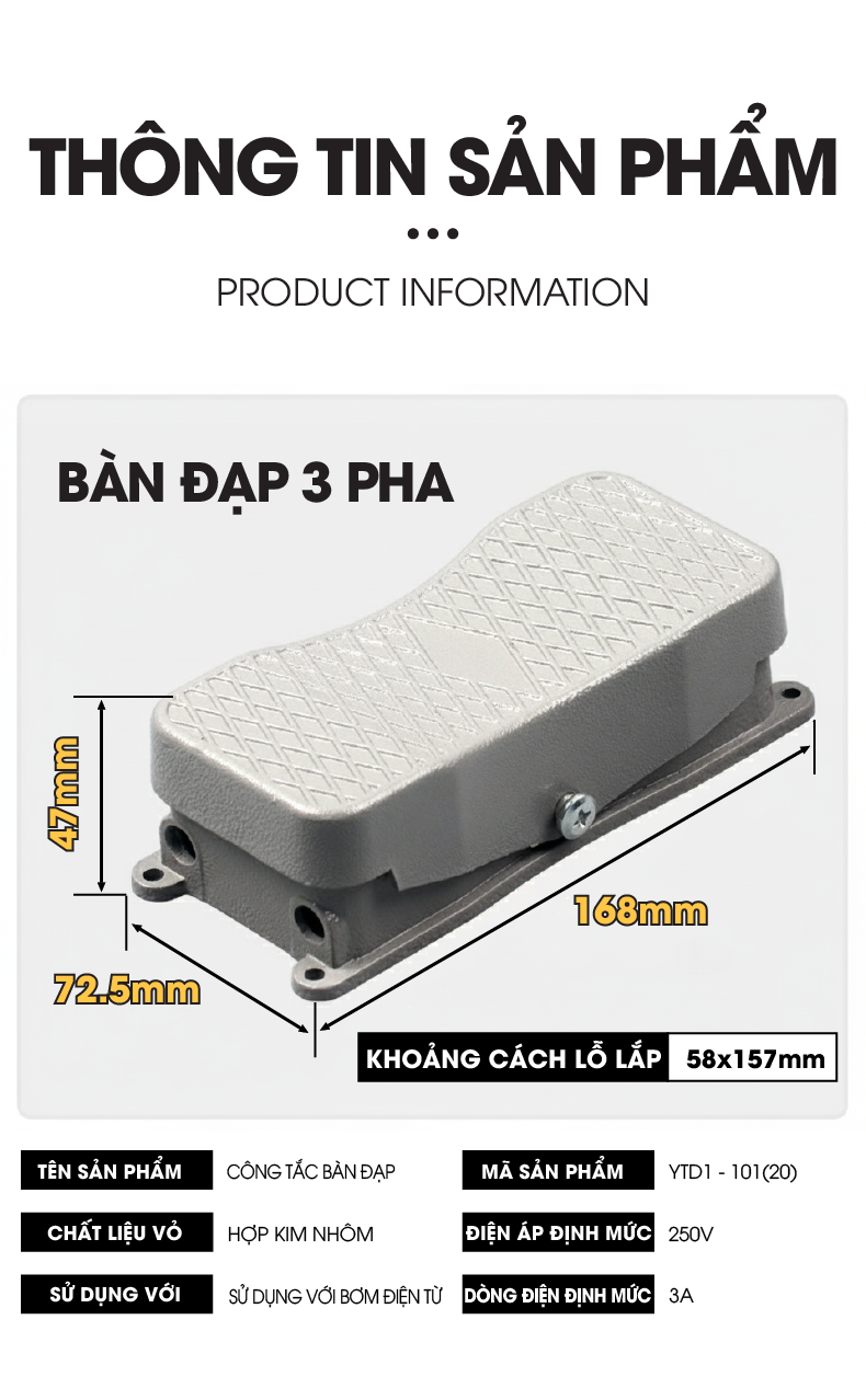 Công tắc bàn đạp chân 2 chiều vỏ nhôm YDT1-101(20)