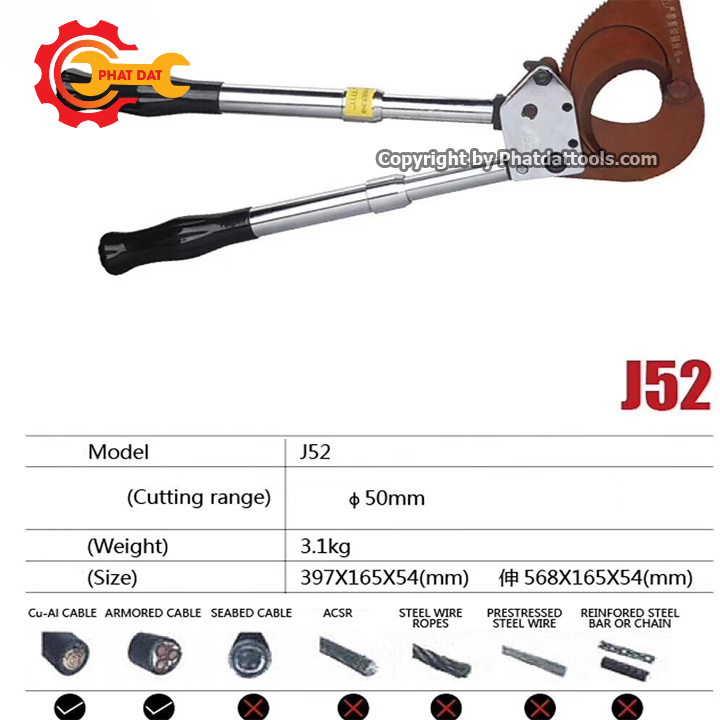 Kìm cắt cáp nhông J52 cắt được cáp nhôm cáp đồng