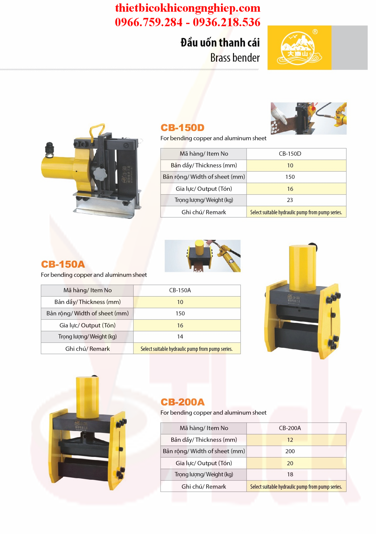 Máy uốn thanh cái thủy lực ,Đầu uốn thanh cái thủy lực, máy uốn ống thủy lực có lực uốn lên đến 20 tấn nên dễ dàng uốn được thanh đồng thanh cái dầy 10mm với bản rộng lên đến 200mm. Đầu uốn thủy lực này dễ dàng kết hợp với bơm tay thủy lực , bơm điện thủy lực tùy theo công suất làm việc của bạn.