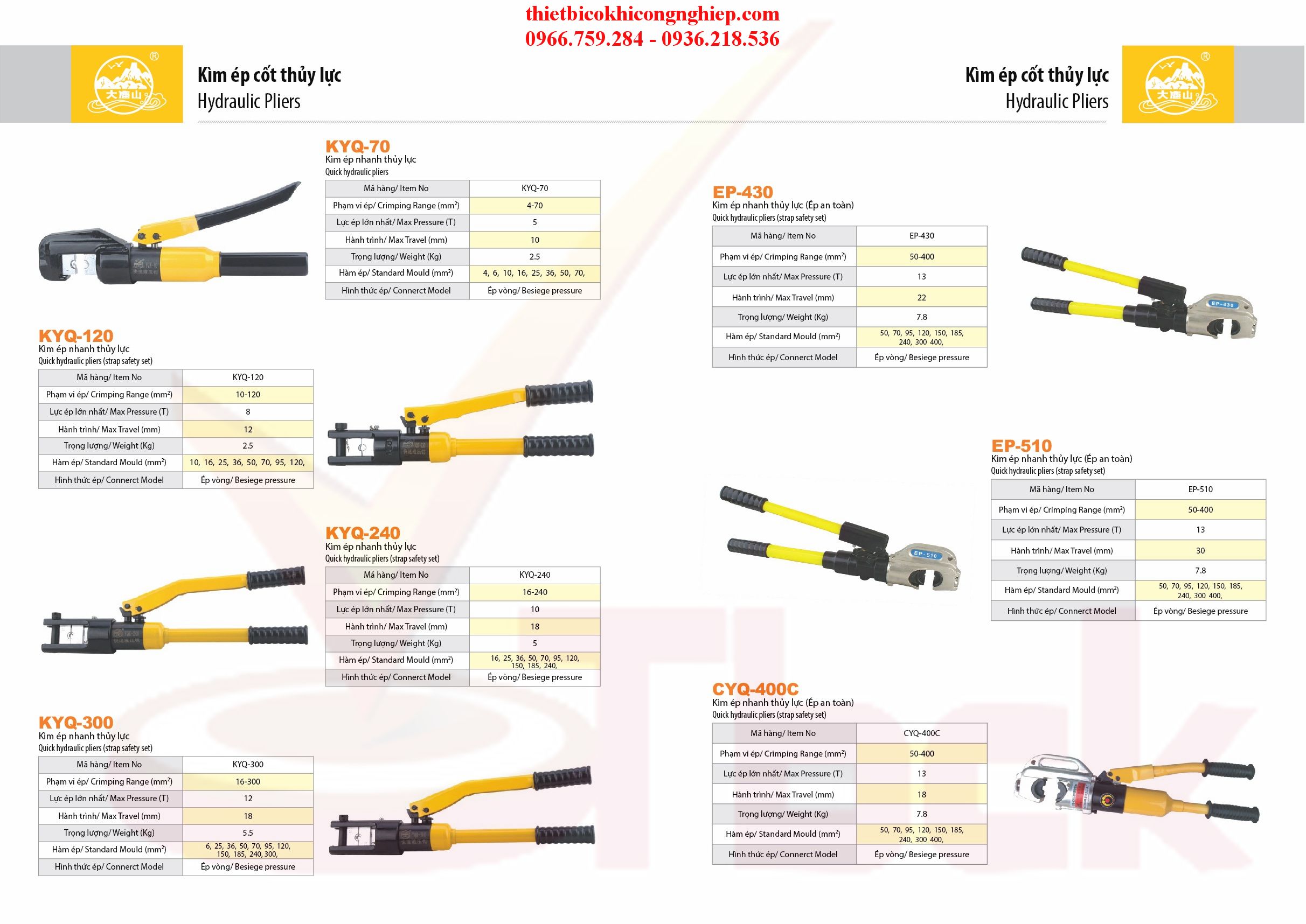 Khuôn ép(mm2): 35, 50, 70, 95, 120, 150, 185, 240, 300