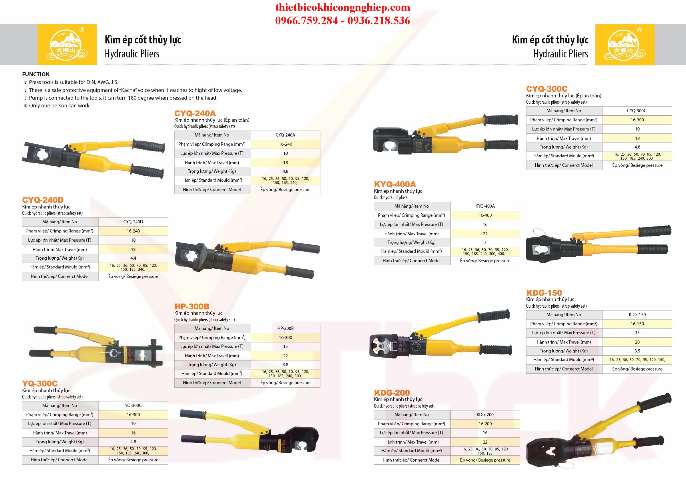 Ngoài ra quý khách có thể tham khảo thêm một số loại kìm ép cos thủy lực dưới đây: