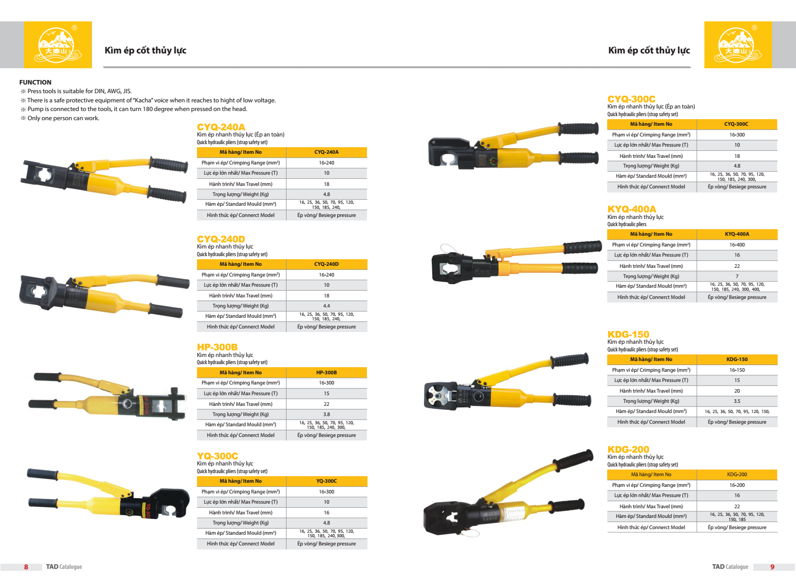 Khuôn ép(mm2): 16, 25, 36, 50, 70, 95, 120, 150,185