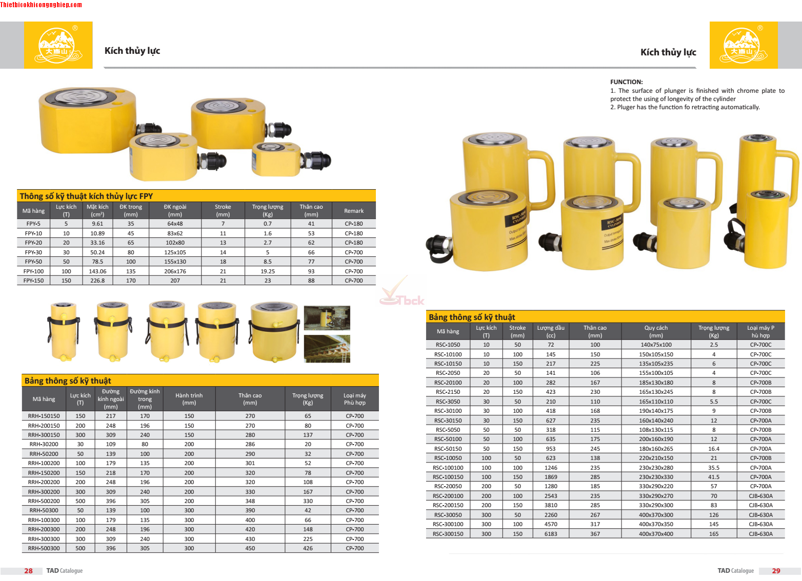 Kích thủy lực-con đội thủy lực PADATOOLS có sức nâng 10 - 100 tấn, hành trình tới 100 mm.
