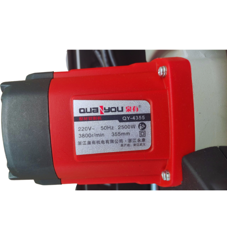 Máy cắt sắt QUANYOU QY-4355 có công tắc nằm ngay trên tay cầm giúp thao tác cắt nhanh và an toàn,máy có thiết kế kẹp vật tư cắt điều chỉnh xoay góc 45 độ,chổi than thiết kế 2 bên hông máy dễ dàng thay thế.
