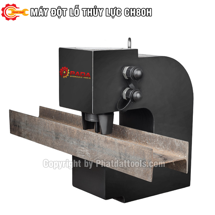 Máy đột lỗ thủy lực CH80H có lực đột 50T dễ dàng đột được tôn sắt thanh đồng dày 16mm.Các khuôn đột chuẩn của máy đột thủy lực Ch80h là ф16 - ф18 – ф22- ф25