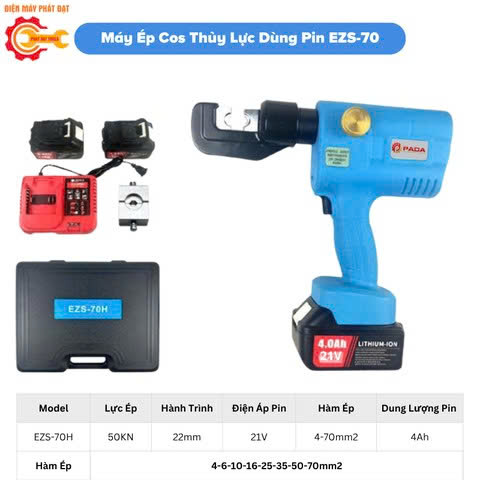Máy ép cos pin PADA EZS-70 – Lực ép 50KN, ép cos nhanh chính xác, dùng pin tiện lợi, hiệu suất cao