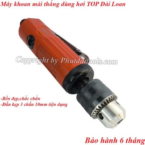 Máy khoan mài thẳng khí nén TOP có thiết kế thon gọn,dễ cầm nắm,đầu kẹp dạng 3 chấu 10mm đa năng,có thể sử dụng với nhiều phụ kiện khác nhau rất tiện dụng