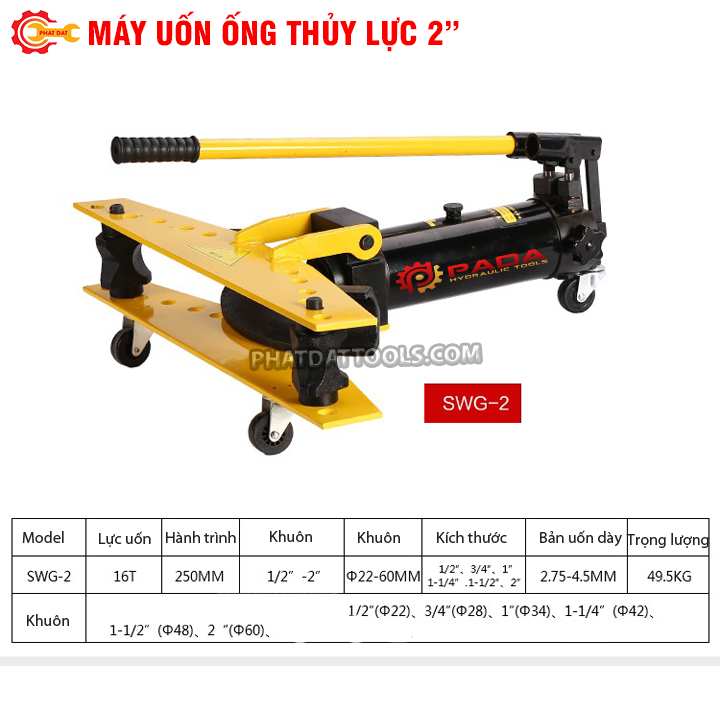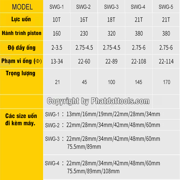 Thông số kỹ thuật Máy uốn ống thủy lực SWG-3